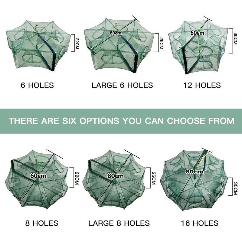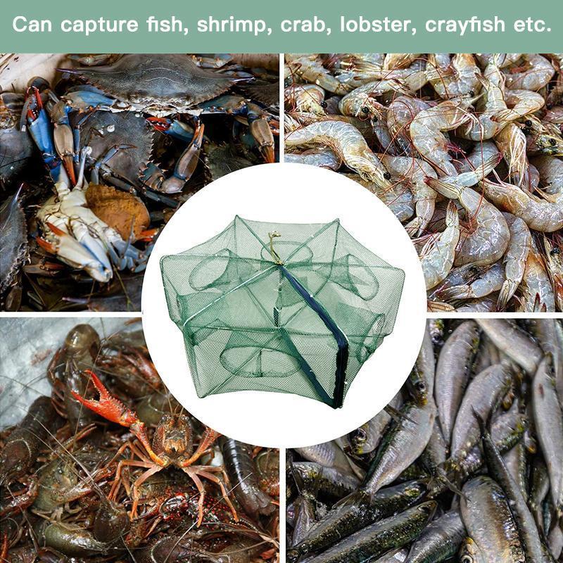 ► 【Net With 360° Design】Fishing net trap with 360° design, great for catching smelt, eels, crabs, fish, lobsters, shrimps, crawfish, crawdad, etc. Put the bait in the cage, then put the cage into the water, the best tool for fishing lovers.