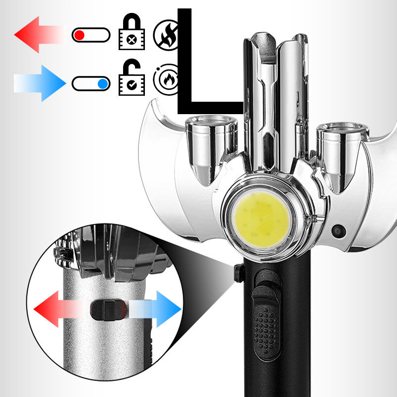 DOUBLE SAFETY SWITCH FOR ACCIDENTAL IGNITION PREVENTION: Designed with safety in mind, this lighter features a double safety switch with a safety lock and ignition switch. Simply push the safety lock to the right when not in use to prevent accidental ignition, ensuring peace of mind.
