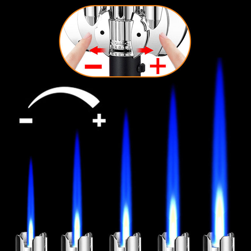 HIGH-TEMPERATURE AND ADJUSTABLE FLAME:This torch lighter produces a powerful high-temperature flame, perfect for various tasks. The adjustable flame size feature allows you to choose the intensity, ensuring you have the right heat for cooking or lighting fires.