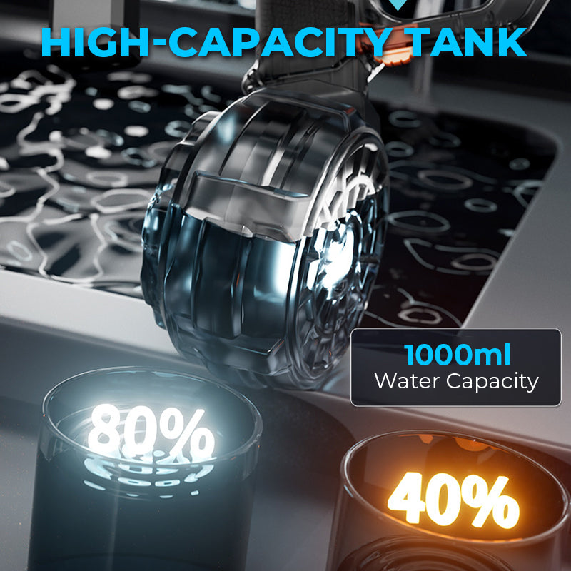 INSTANT ELECTRIC WATER REFILL AND HIGH-CAPACITY TANK: No pumping needed! Just submerge and press the button for rapid auto-fill. The transparent tank lets you monitor water levels easily.