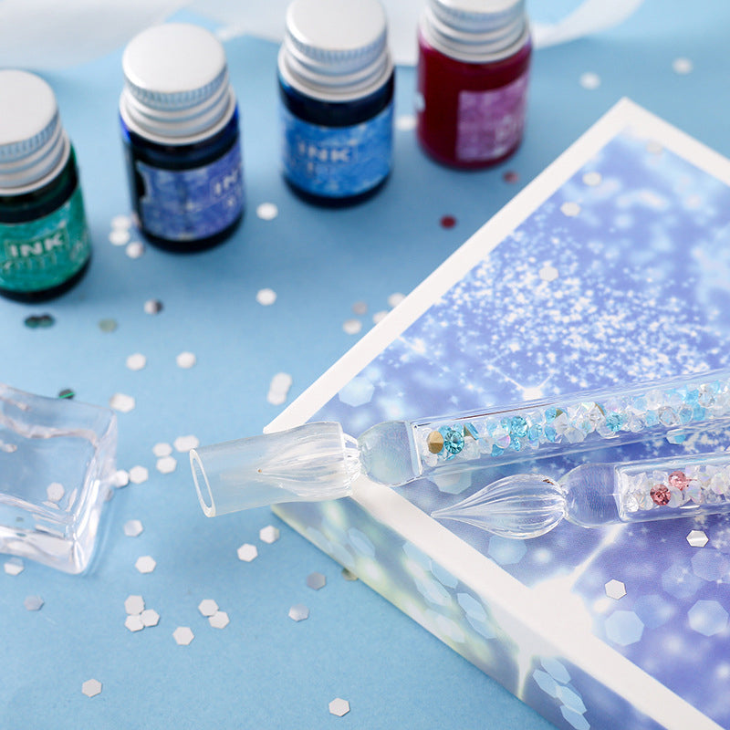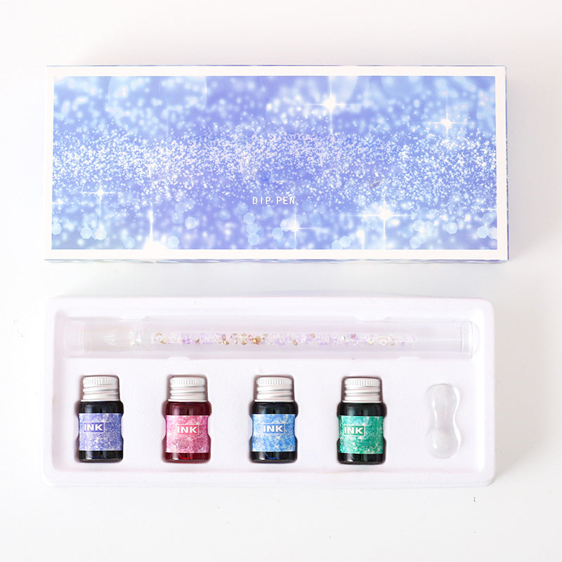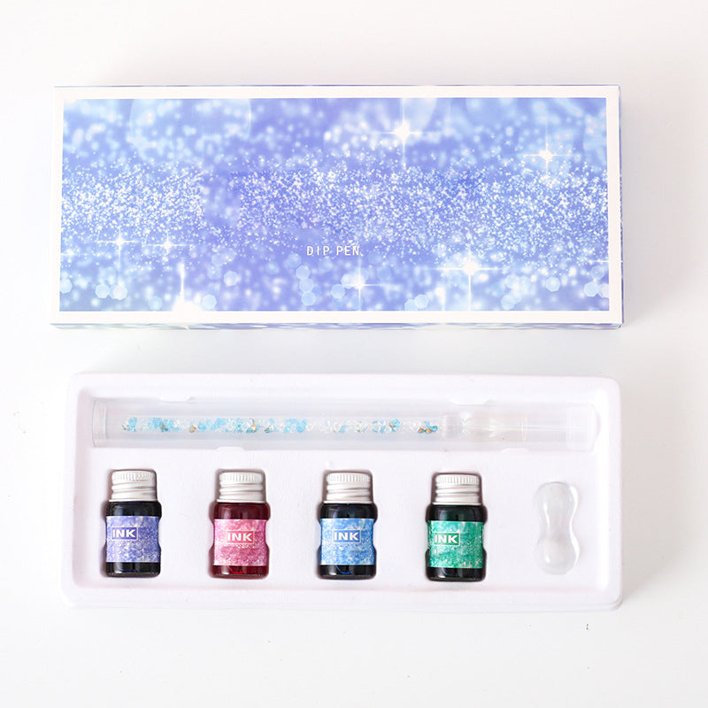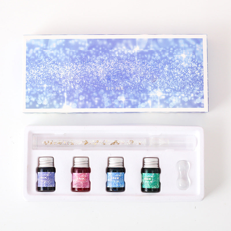 Glass Dip Pen Set with 4 Colored Inks