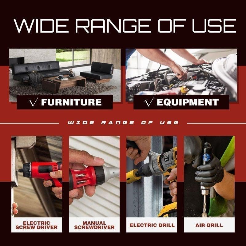 - Suitable for electric screwdrivers, manual screwdrivers, electric drills, and air drills. Ideal for working on motorcycles, bicycles, and furniture for easy furniture and equipment repair and disassembly.