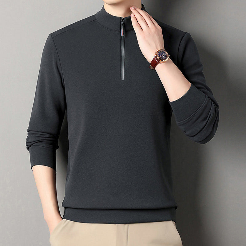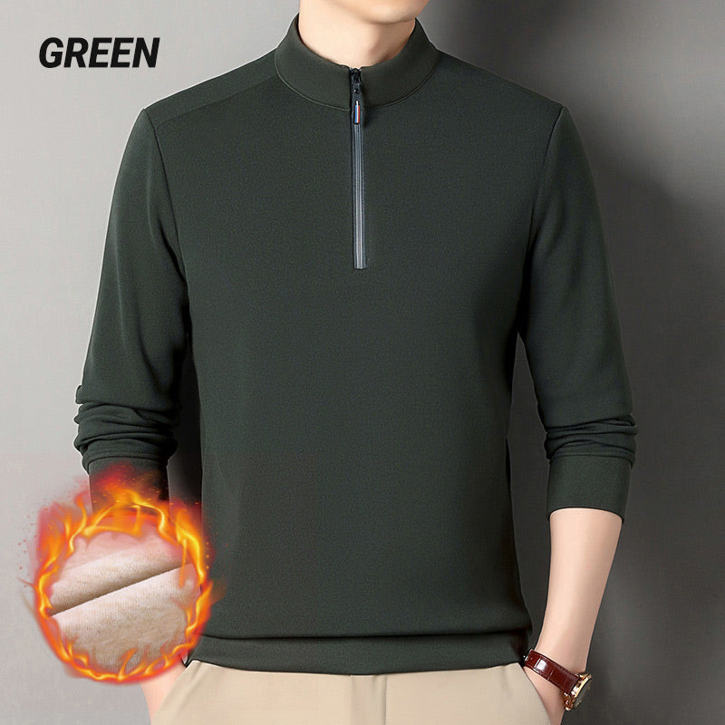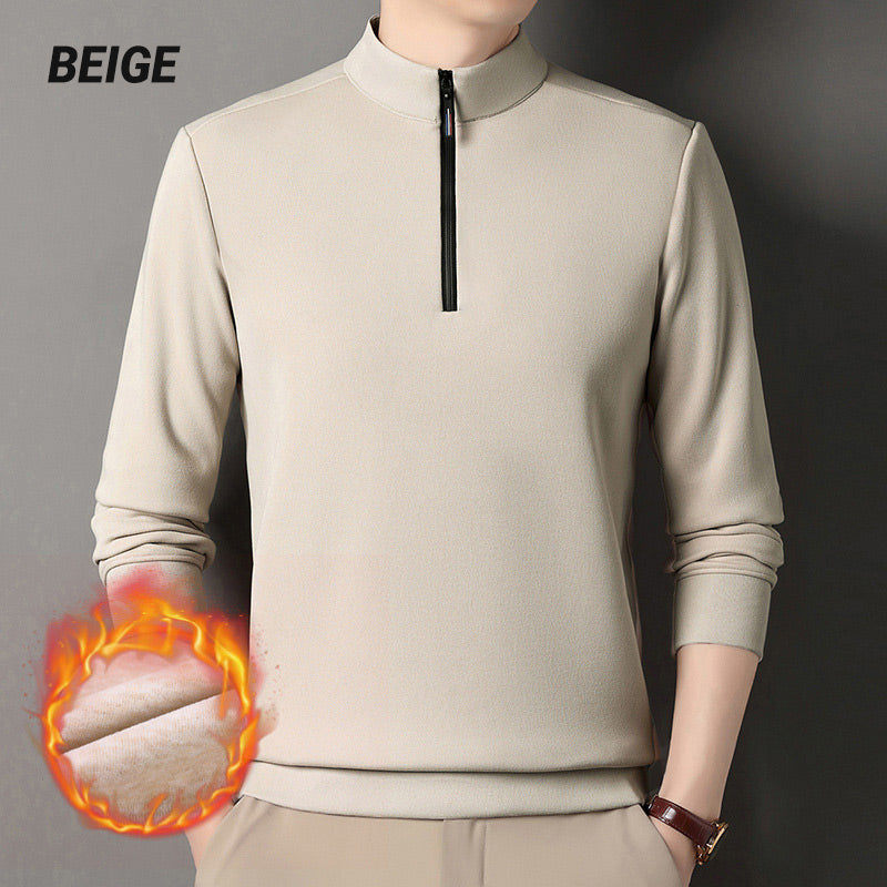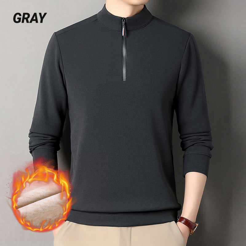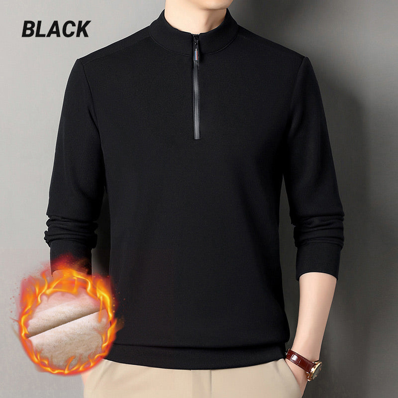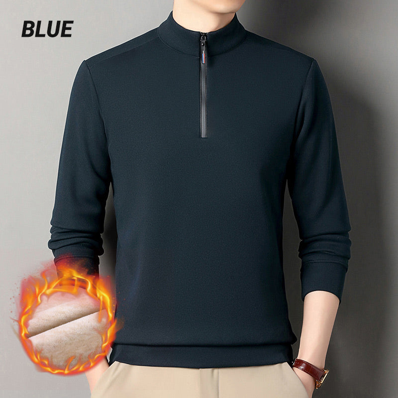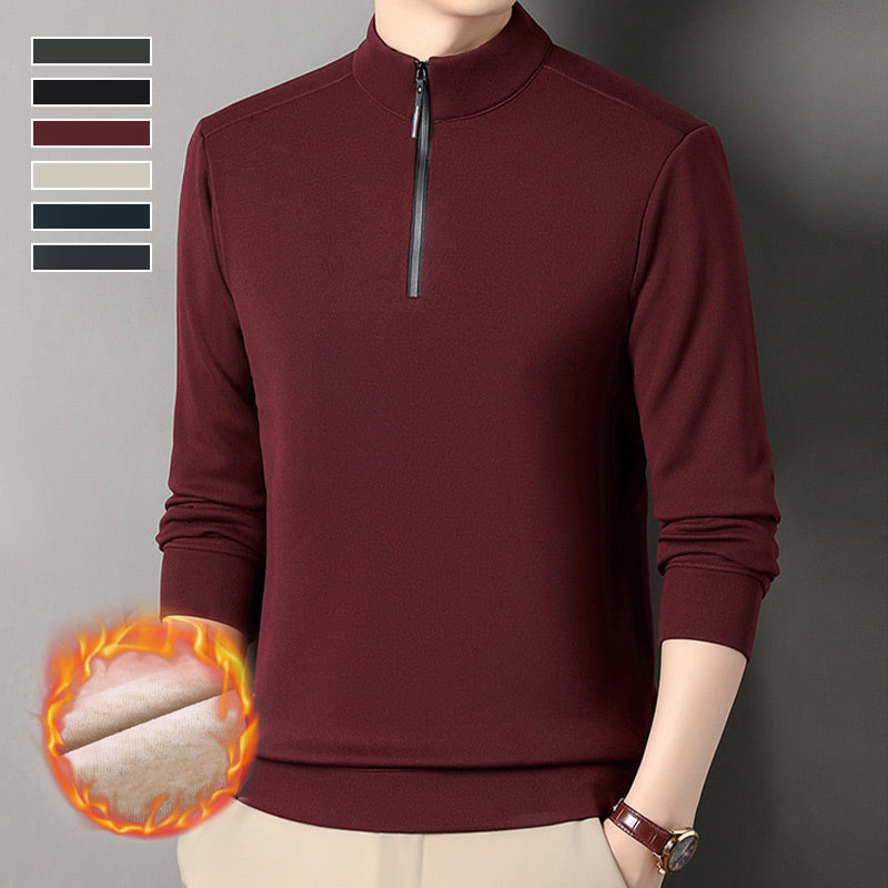 Men's Plush-Lined Quarter-Zip Stand Collar Warm Top
