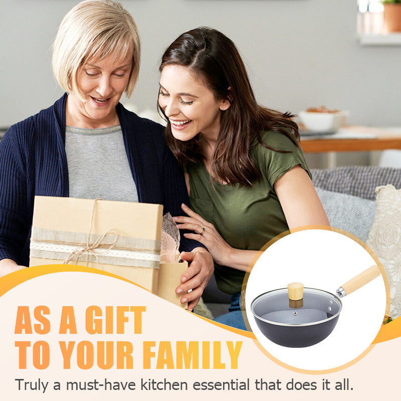 LIGHTWEIGHT ERGONOMIC HANDLE – The pan is lightweight and equipped with an ergonomic wooden handle for a comfortable, secure grip. Its thoughtful design allows for easy handling and maneuverability, making long cooking sessions effortless and enjoyable.