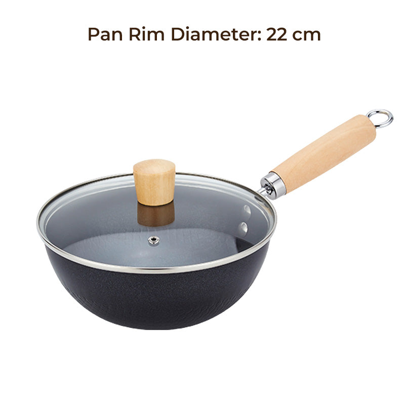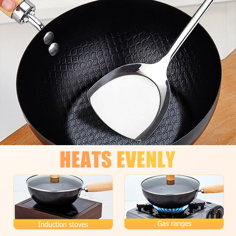 HIGH-WALL FLAT BOTTOM STRUCTURE – Featuring elevated sides for increased capacity and reduced spillage, this pan also has a flat, stable base that works perfectly on induction stoves, gas ranges, and more. It heats evenly and excels at stir-frying, frying, simmering, and all your favorite cooking techniques.