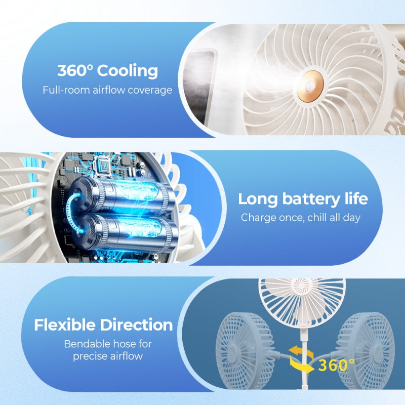 360° COOLING COVERAGE - Say goodbye to stuffy corners! Our fan’s full-rotation design delivers a refreshing breeze exactly where you need it. That stiff, fixed fan? Ancient history. The flexible hose bends exactly to your whims. Comfort in seconds, zero hassle.