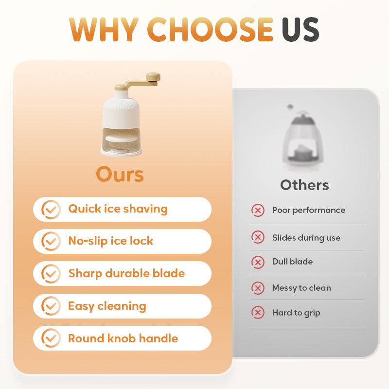 RAZOR-SHARP, RUST-RESISTANT BLADE — Thickened stainless steel blade stays sharp and rust-free, producing smooth, fine ice perfect for drinks or desserts. Made from food-safe materials to keep your treats fresh and safe.