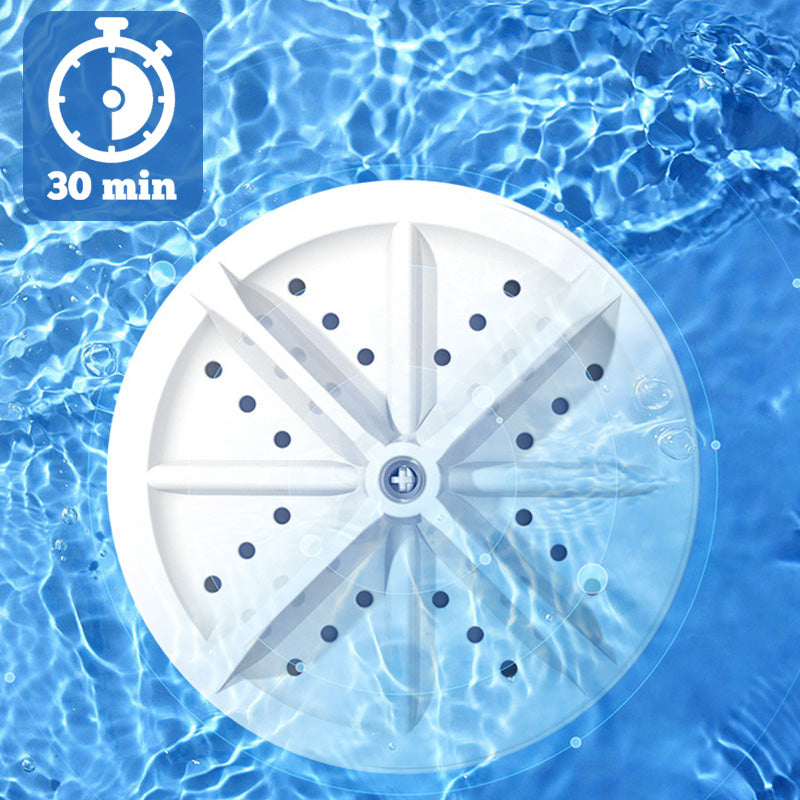 INTELLIGENT WATER SENSOR - The portable mini washing machine comes with an intelligent water sensor that automatically turns the machine on when it is placed face up in water. After 30 minutes of operation, the machine will automatically turn off.