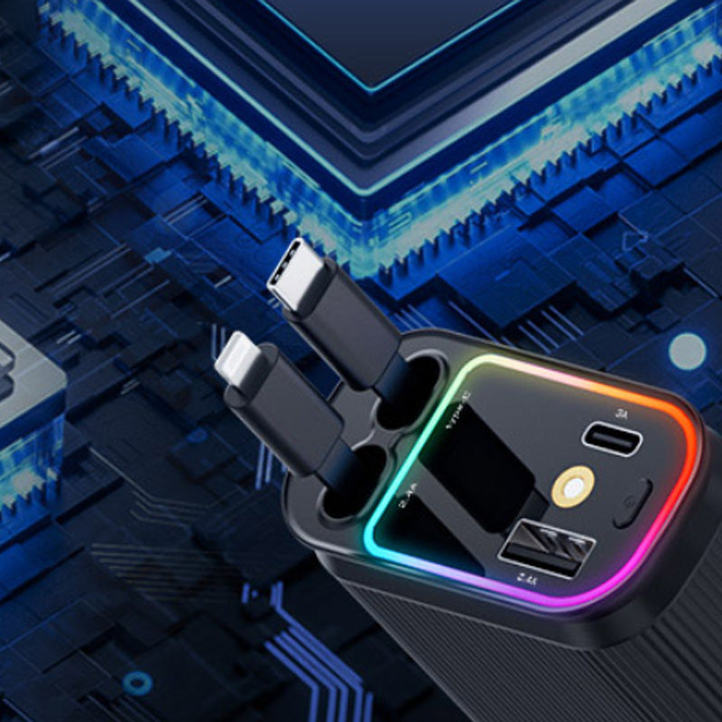 RETRACTABLE CABLE FOR TIDY CONVENIENCE: The integrated retractable cable eliminates clutter and tangling. It extends when needed and retracts neatly into the charger, making it easy to store and use without hassle.
