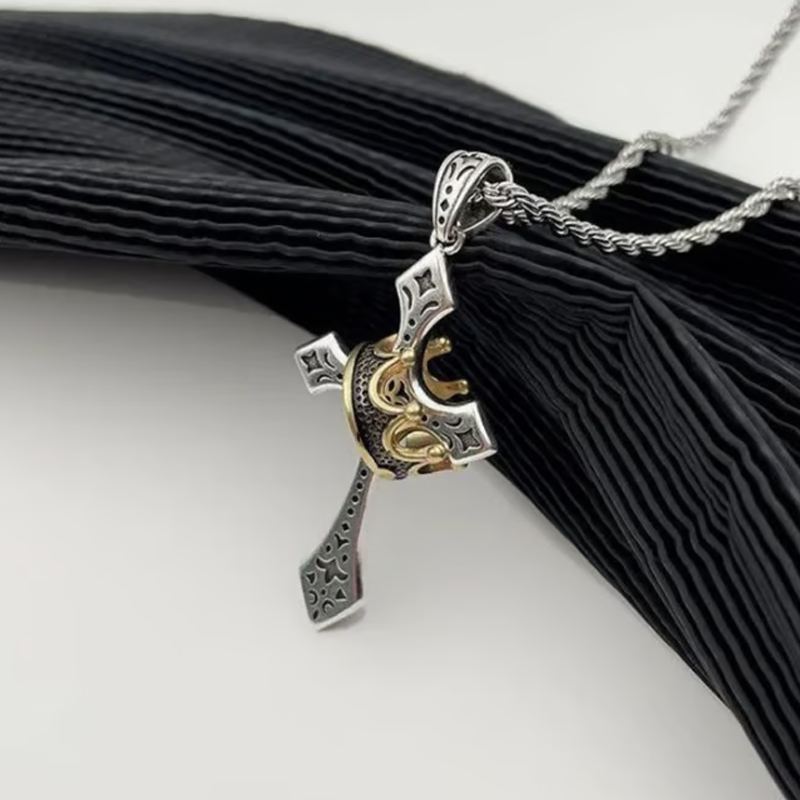 Vintage Crown Cross Necklace
