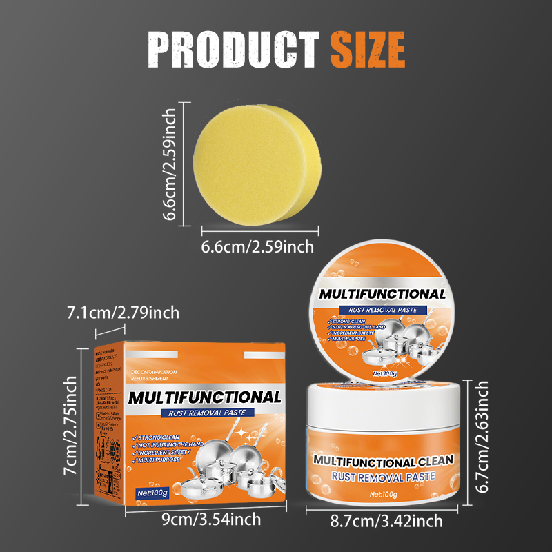 Package Includes:1*Multipurpose Rust & Stain Cleaning Paste, 1* Sponge